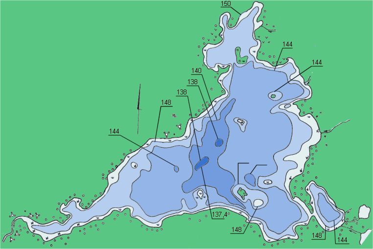kuris vietomis šlapias, mišrus, kitur – sausi pušynai. Vandens skaidrumas – apie 2 m, žalsvai rudos