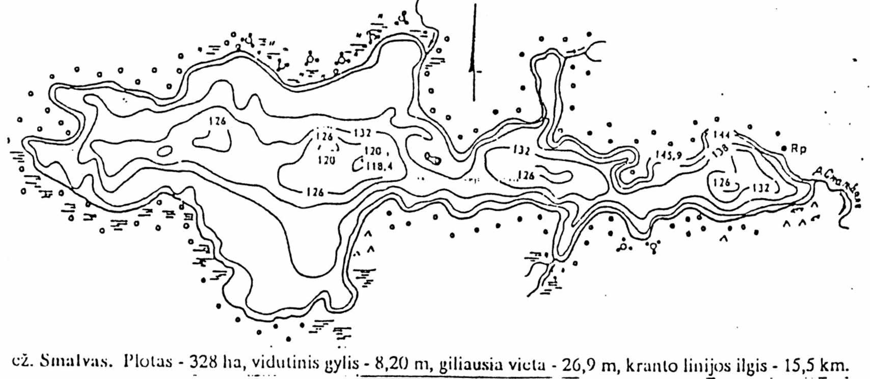 įlankose želia viksvos, ajerai, vietomis – fragmentiški nendrynai, bet visumoje augalijos nedaug. Vanduo labai skaidrus, iki 5 m pagal Sekki diską. Ežero plotas – 336 ha, didžiausias gylis siekia beveik 27 m, vidutinis – 8,2 m. Pagal maksimalaus gylio rodiklį Smalvas priskirtinas stratifikuotų ežerų grupei. Pagal žuvininkystės tipą priskirtas karšiniams ežerams.