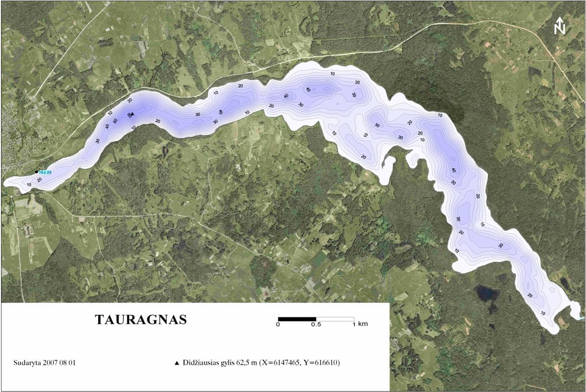 Ežerai Tauragno ežeras 5966 Tauragnas – giliausias ir aukščiausiai virš jūros lygio iškilęs Lietuvos ežeras, esantis Utenos rajone, Aukštaitijos nacionaliniame parke. Vakarinis pakraštys yra prie Tauragnų, o pietrytinis – ties Ignalinos.